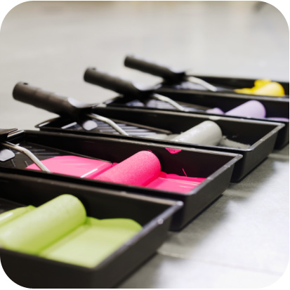 Résultat : un scotch pas toujours bien positionné ou mal collé, une bonne peinture gris anthracite des familles et quelques belles baves sur le mur blanc à côté et sur mes plinthes blanches immaculées…
