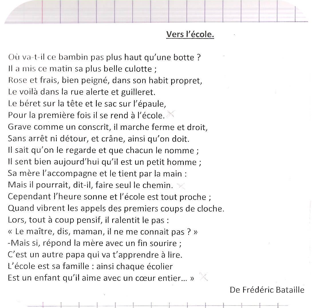 Par acquis de conscience, je vérifie quand même l’agenda du fiston lundi soir et je découvre avec horreur qu’il faut apprendre une big poésie pour jeudi 4 novembre…