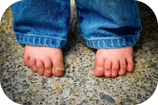 Découvrir en le dé-sapant qu’il a les pieds et les genoux sales… Premier gloups !